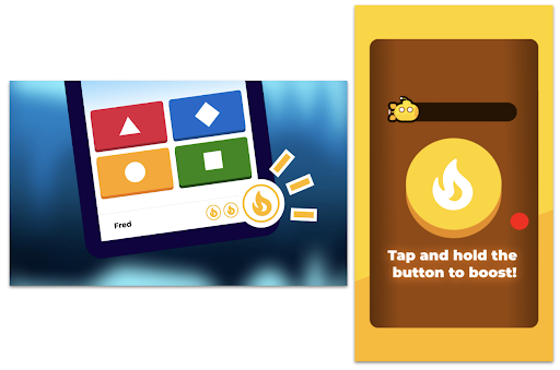 - Setelah menjawab 3 jawaban dengan benar, pemain dapat mengetuk dan menahan tombol boost yang akan mempercepat laju kapal selam di layar host.